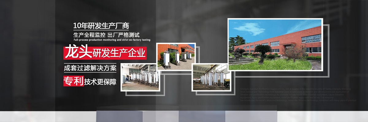 成都愛爾純凈化設(shè)備有限公司,坐落于美麗的天府之國(guó),成都市溫江區(qū)海峽科技園工業(yè)區(qū),專業(yè)從事于過濾、凈化技術(shù)的研發(fā)應(yīng)用,產(chǎn)品有保健酒過濾設(shè)備、白酒過濾設(shè)備、白酒凈化設(shè)備、水凈化設(shè)備等,公司引進(jìn)世界先進(jìn)過濾分子技術(shù),結(jié)合專業(yè)技術(shù)人員資深多年實(shí)踐經(jīng)驗(yàn),解決酒類、飲水類后期處理難題。 業(yè)務(wù)涵蓋,酒類過濾:除混濁沉淀,澄清處理、除苦味,異雜味,新酒催熟陳化處理 、除塑化劑、固形物、雜醇油、甲醇及各類含量超標(biāo)后期處理。 水類:軟水、純凈水、礦泉水、飲料等凈化處理。用心為客戶提高生產(chǎn)效率、提高產(chǎn)品質(zhì)量、降低生產(chǎn)成本、環(huán)保減排而開發(fā)創(chuàng)新,堅(jiān)持奮斗。 公司至誠(chéng)每一位客戶,“誠(chéng)信服務(wù),客戶至上”為宗旨,為客戶要求,用心凈化每一點(diǎn)滴,我們都將以精準(zhǔn)的數(shù)據(jù)化設(shè)計(jì)、嚴(yán)格的設(shè)備制作質(zhì)量把關(guān)、快捷專業(yè)的安裝調(diào)試以及周到的售后服務(wù),解決客戶生產(chǎn)過程中遇見的各種酒、水后期處理的技術(shù)難題。